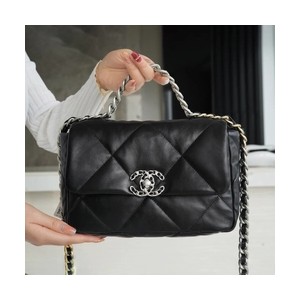 • 샤넬 19백 미디엄(스몰) 실버 체인 램스킨 블랙