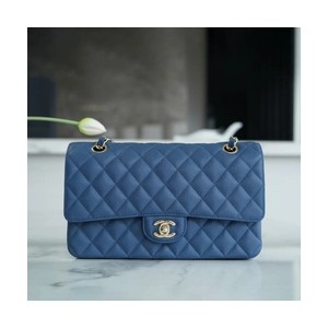 • 샤넬 클래식 미디엄 블루 금장 캐비어