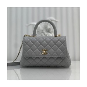 • 샤넬 24A COCO 탑 핸드 캐비어 백 그레이