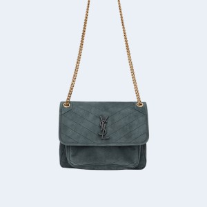 • 생로랑 니키 스웨이드 미디움 체인백 블루