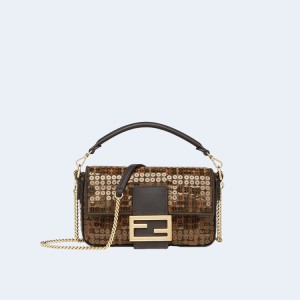 • 펜디 바게트 FF 자카드 시퀸 패브릭 백