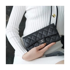 • 샤넬 클래식 캐비어 플랩 장지갑 은장