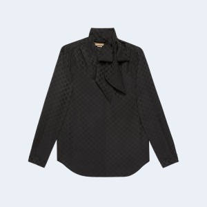 • 구찌 넥 보우 실크 크레이프 셔츠