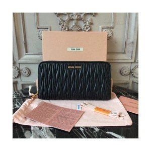 • 미우미우 마테라쎄 지퍼 장지갑 블랙