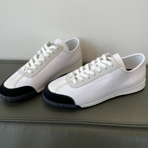 • 샤넬 스니커즈 카프스킨 벨벳 카프스킨 화이트/블랙