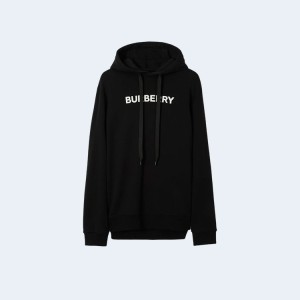 • 버버리 로고 프린트 코튼 후드 블랙