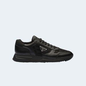 • 프라다 가죽 및 나일론 하이탑 스니커즈 블랙