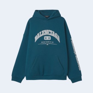 • 발렌시아가 메종 로고 프린트 후드 블루