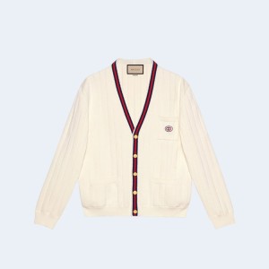 • 구찌 웹 디테일 니트 코튼 V넥