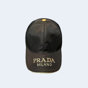 • 프라다 리나일론 자수 로고 블랙 베이스볼 캡