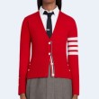 • 톰브라운 레드 캐시미어 4-바 브이넥 카디건