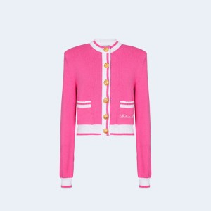 • 발망 시그니처 니트 가디건 화이트 핑크