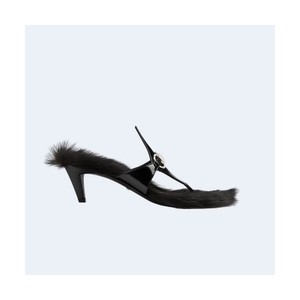• 구찌 홀스빗 메탈릭 가죽 퍼 샌들 블랙