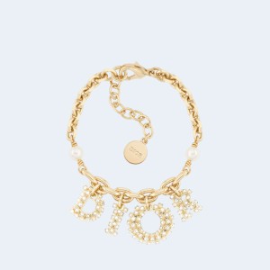 • 디올 골드 피니쉬 화이트 펄 실버 톤 팔찌