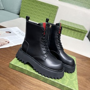 • 구찌 블랙 샤이니 레더 웹 앵글 부츠