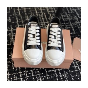 • 미우미우 레더 워시드 스니커즈 블랙