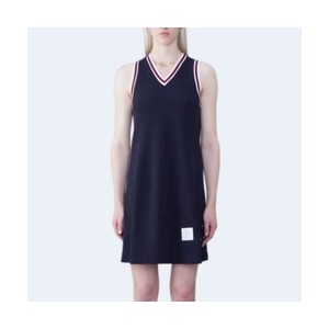 • 톰브라운 클래식 피케 스트라이프 브이넥 드레스 네이비