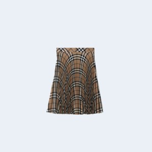 • 버버리 플리츠 체크 울 블렌드 스커트