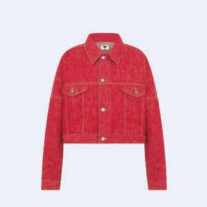 • 디올 아마릴리스 레드 코튼 데님 크롭 자켓