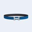 • 에르메스 H STRIE 리버서블 벨트 블루 은장 32mm