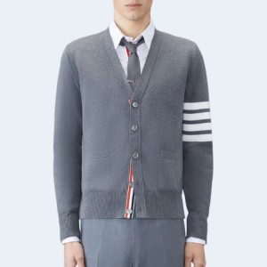 • 톰브라운 밀라노 브이넥 카디건 미디엄 그레이