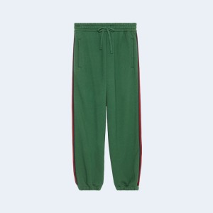 • 구찌 웹 디테일 코튼 저지 트랙 팬츠