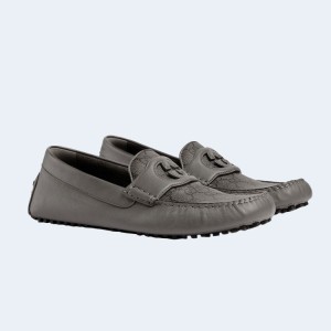 • 구찌 인터로킹 G 드라이빙 슈즈 로고 그레이 레더