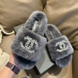 • 샤넬 CC 시어링 뮬 슬리퍼 그레이