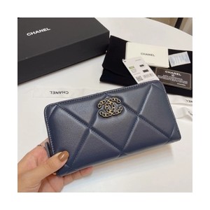• 샤넬 19 롱 플랩 램스킨 지퍼 장지갑