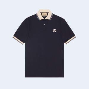 • 구찌 인터로킹 G 코튼 폴로 셔츠 네이비