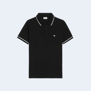 • 셀린느 코튼 피케 클래식 폴로 셔츠 블랙