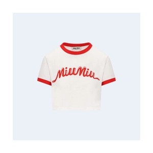 • 미우미우 로고 프린트 크롭 티셔츠