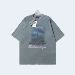 • 발렌시아가 파리 문 오버사이즈 티셔츠 블루