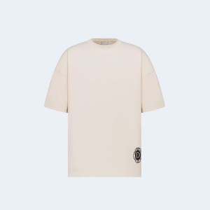 • 디올 에크루 실크 코튼 저지 티셔츠 화이트