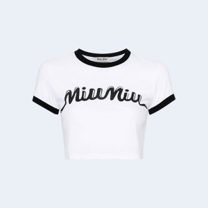 • 미우미우 로고 프린트 크롭 티셔츠