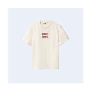 • 미우미우 크리스탈 로고 저지 티셔츠