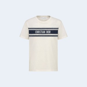 • 디올 화이트 앤 네이비 블루 코튼 저지 티셔츠