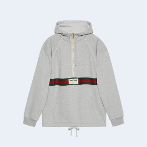 • 구찌 웹 디테일 코튼 저지 스웨트셔츠 그레이