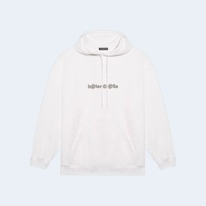 • 발렌시아가 심볼릭 체스트 크리에이티브 로고 레트로 후드 화이트