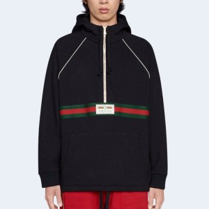 • 구찌 코튼 저지 스웨트셔츠 웹 블랙