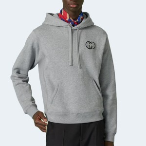 • 구찌 코튼 저지 후드 스웨트셔츠 그레이
