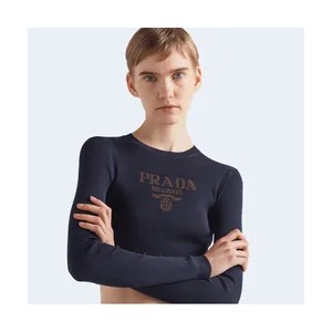 • 프라다 로고 인타르시아 크롭 실크 스웨터