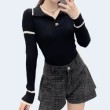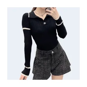 • 샤넬 브이넥 로고 골지 니트 블랙