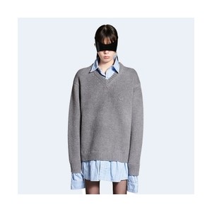 • 발렌시아가 레이어드 셔츠 브이넥 스웨터 그레이
