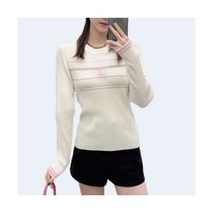 • 샤넬 엠브로이디드 크루넥 니트 아이보리