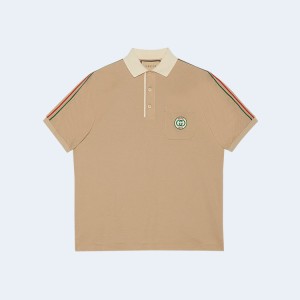 • 구찌 베이지 스트레츠 코튼 피케 폴로 셔츠