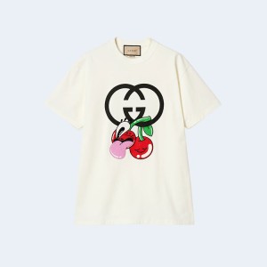 • 구찌 코튼 저지 체리 프린트 티셔츠 화이트