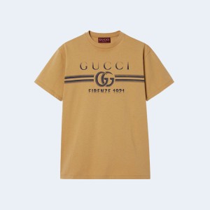 • 구찌 프린트 코튼 저지 티셔츠 베이지