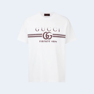 • 구찌 프린트 코튼 저지 티셔츠 화이트
