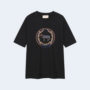 • 구찌 자수 로고 코튼 티셔츠 블랙